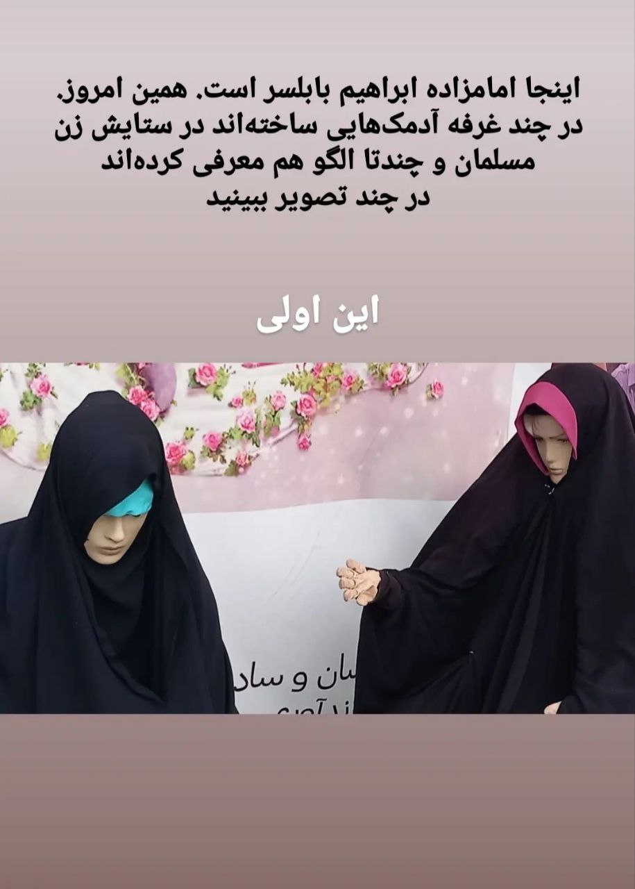 در تصاویری که او نمایش داده، مجسمههای متعددی به عنوان الگوی زن مسلمان از سوی مسئولان شهر معرفی شده. به نظر میرسد از نظر مدیران شهری در بابلسر فقط گونه خاصی از حجاب و شکلهای محدودی از زندگی قابل قبول است و بخش بزرگی از جامعه که چنین ویژگیهایی ندارند در تاریکی به سر میبرند و باید به راه راست هدایت شوند.