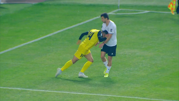 ضربه‌ای که آریا به سینه مدافع حریف کوبید شبیه به ضربه‌ای بود که زیدان در فینال جام‌جهانی ۲۰۰۶ به سینه مارکو ماتراتزی مدافع تیم ملی ایتالیا زد و شباهت این ضربه با اشاره مستقیم سرمربی و دروازه‌بان آخال در نشست خبری هم انجام شد و آنها اعلام کردند که آریا باید از زمین اخراج می‌شد.
