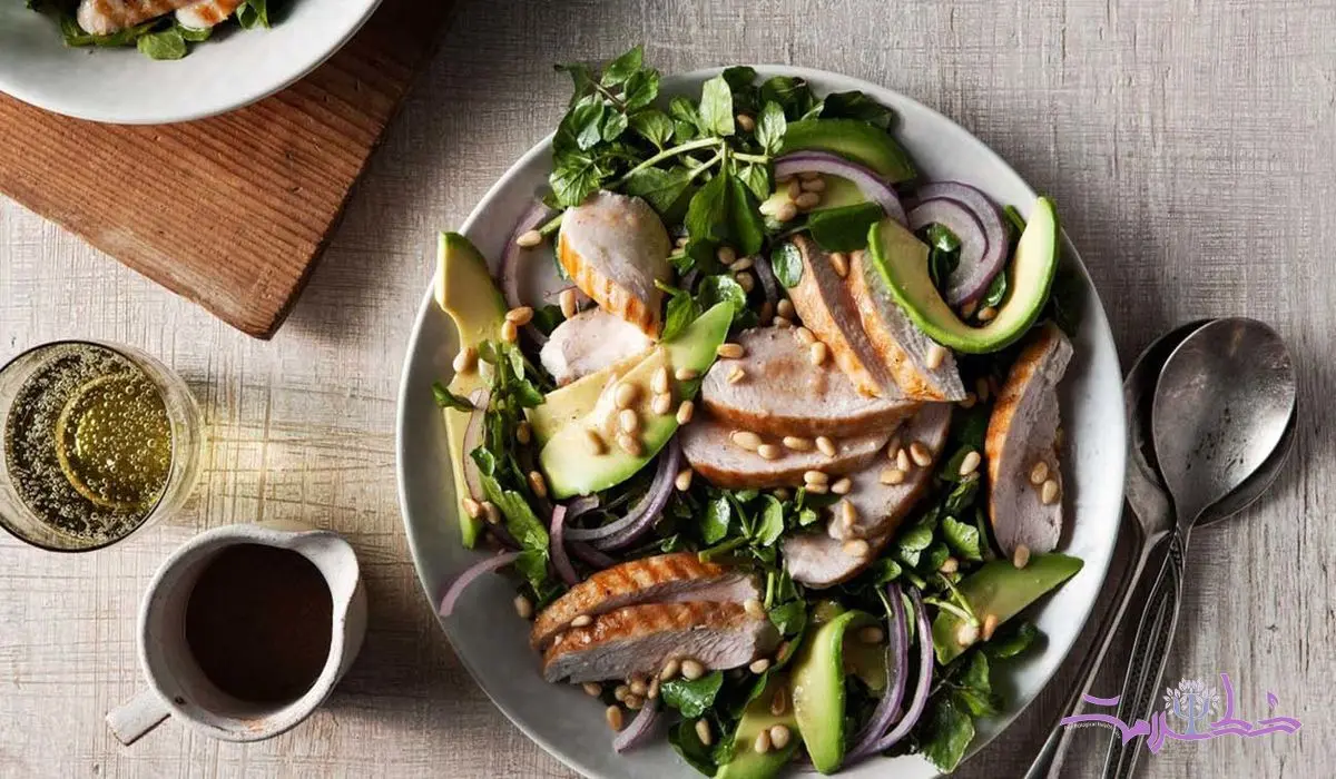 غذاهای حاوی فولات (B9)، آهن و چربی های مفید مثل سالاد اسفناج با آووکادو و مرغ گریل شده، باعث افزایش ترشح دوپامین و پایداری سطح انرژی در طول روز می شوند. این ناهار سالم، یکی از بهترین وعده ها برای بهبود خلق و تمرکز ذهنی است.