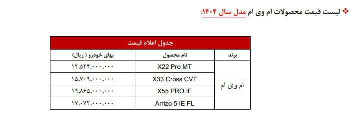 شرکت مدیران خودرو با انتشار فهرست جدید قیمت محصولات از افزایش ۱۵ تا ۲۰ درصدی قیمت نهایی خودروهای 3 برند زیرمجموعه این شرکت شامل امویام، فونیکس و استریم خبر داد. این دومین مرحله از افزایش قیمت محصولات مدیران خودرو در سال جاری است.