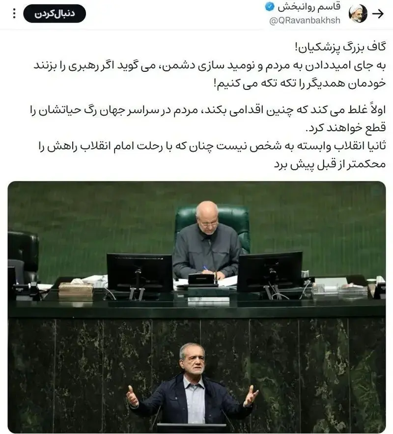قاسم روانبخش ، عضو جبهه پایداری و نماینده مجلس دوازدهم، در حساب کاربری خود در ویراستاری نوشت: