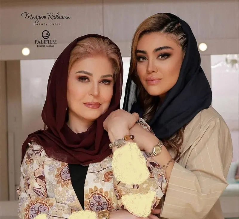 در ادامه، تصویری آتلیهای از اکرم محمدی و دخترش با آرایش و استایلی خاص و شیک را مشاهده میکنید.