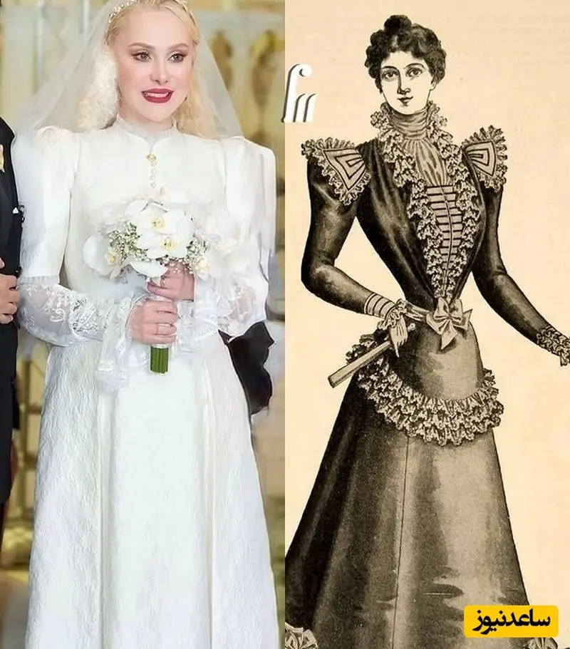 استفاده از پارچه‌ای مات و لطیف، بدون درخشش زیاد، این ظاهر کلاسیک را همچون لباس‌های اشرافی قرن نوزدهم تکمیل کرده بود. در کنار این، کت‌وشلوار مشکی بابک انصاری، که ساختار شیک و کلاسیکی داشت، تضادی جذاب با لطافت لباس عروس ایجاد کرده و ترکیب بینظیری را شکل داده بود.